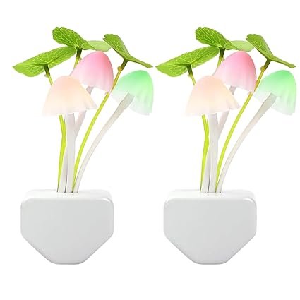 LED Mushroom Night Lamp with Multicolour LEDs, Smart Auto On/Off Sensor