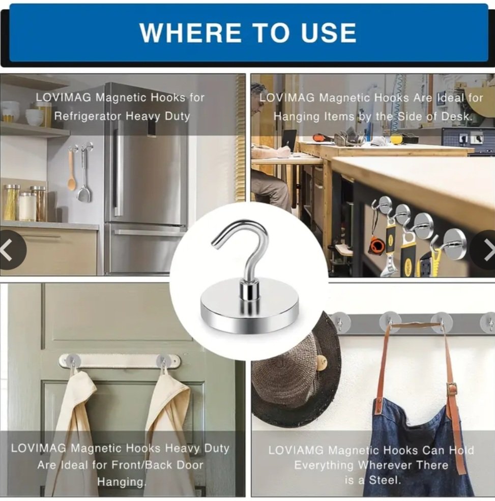 4-Pack Heavy Duty Magnetic Hooks.